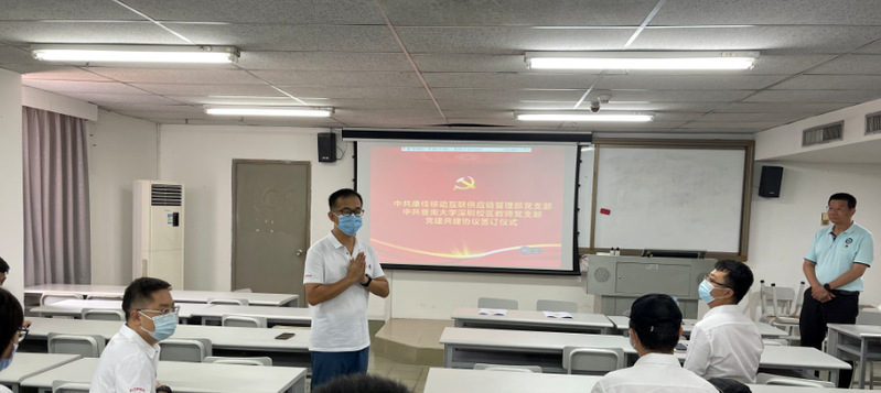 仪式上,黎伟介绍了康佳移动互联供应链的项目特色,并表示这是一个历史性的进步。与学校支部的联系,可以发挥新葡京博彩官网 和康佳移动互联睦邻优势,以党建引领为宗旨、支部共建和项目协作为抓手、产学研协同为路径、共同进步谋发展为目标,双方强强联合搭建党建共建平台。