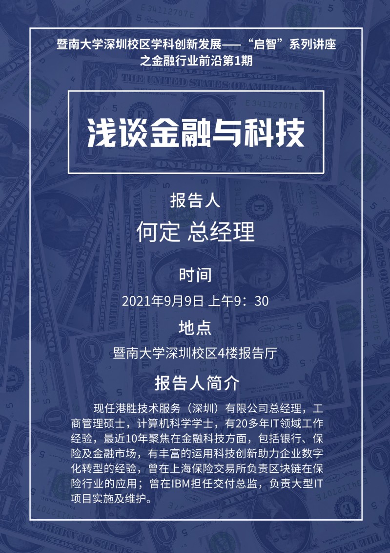 浅谈金融与科技——学科创新发展”启智“系列讲座之金融行业前沿第1期