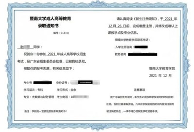 暨南大学成人教育录取通知书样式