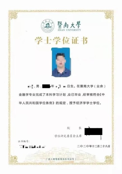 暨南大学成人教育学士学位证书样式