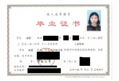 暨南大学成人教育毕业证书样式