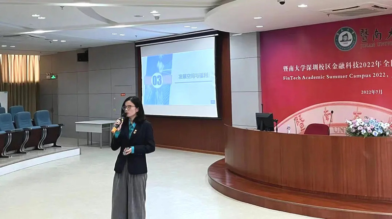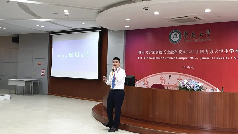深圳市金融科技协会冯伟表达了对本次宣讲会圆满开展的祝愿和对同学们顺利就业的期许,他认为当代年轻人代表社会经济发展的活力,同学们要抓住每一次机会,不断夯实专业能力,为未来就业做好扎实准备。
