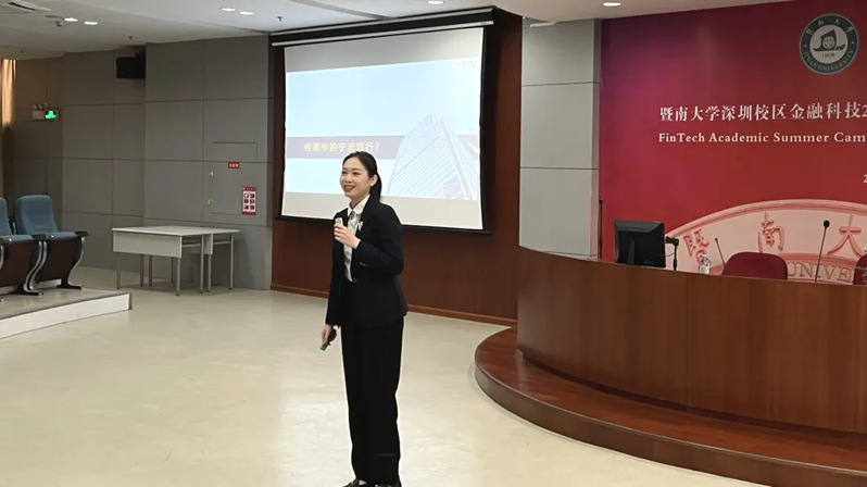 宁波银行股份有限公司成立于1997410日,是国内首批A股上市的城商行之一,拥有总资产超2.2万亿。宁波银行深圳分行共有分支机构20个,员工人数超1200人。宁波银行深圳分行HR邓文琦讲述了公司的组织架构、发展情况、薪酬福利和招聘岗位要求,并且邀请暨南大学2018届产业经济学毕业生李菲向学弟学妹们分享自己在宁波银行梅林支行的工作经历和心得体会。李菲感慨:第一份工作的选择对于应届生来说尤其重要,一个公平、公正的平台,能让职员在向优秀同事学习的过程中实现自我价值的提升。在此分享中,参会同学对于职业选择有了更深入的思考。
