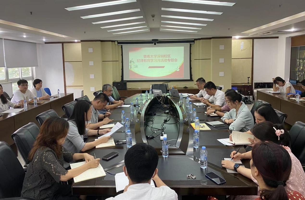 会议首先由宁健传达《2023年暨南大学纪律教育学习月活动》的相关要求,同时通报校区纪律教育学习月活动安排。她要求校区教职工要充分认识开展纪律教育学习月活动的重要意义,提高政治站位,强化责任落实,把纪律教育学习月活动和学习贯彻习近平新时代中国特色社会主义思想相结合,和本职工作相结合,将纪律教育学习成果转化为推动工作高质量发展的强大动力。