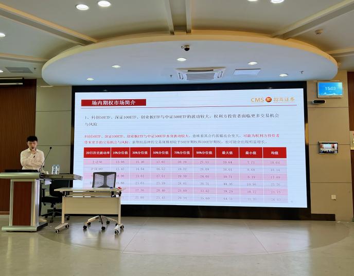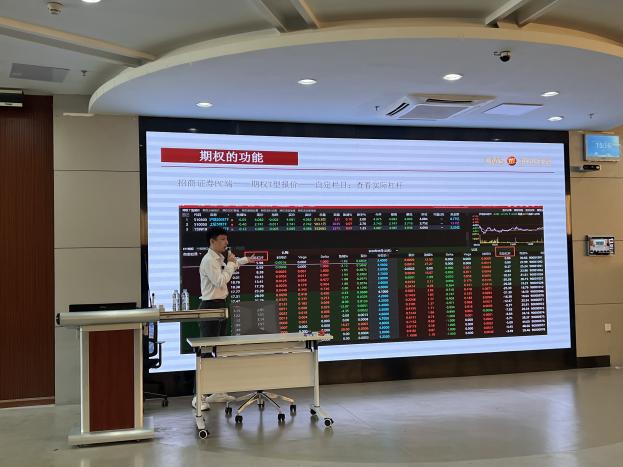 课堂上,詹洋介绍了国内场内期权市场的简介、期权的的基本概念与功能、期权的合约要素,并就期权的价格构成与影响因素及期权策略进行了详细的说明,如教学了期权的定义,期权是在约定的时间按约定的价格,行使交易标的资产的权利,包括认购期权、认沽期权,美式期权、欧式期权;讲解了行业相关术语,期权期货的区别,期权是权利义务不对称的资产,期货是权利义务对称的资产;传授了期权价格包括内在价值与时间价值,内在价值是确定及可计算的,时间价值是有规律但难以确定的;以及介绍了期权的功能包括风险转移、收益倍增、立体化作战、精准化投资等。