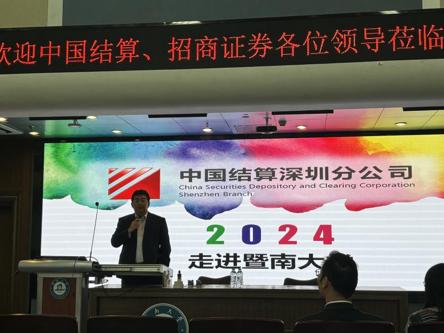 3月21日,中国结算联合招商证券在新葡京博彩官网 三楼报告厅开展了中国结算公司及证券结算登记业务相关课程,分别由中国结算深圳分公司客户服务部总监毕胜、中国结算深圳分公司业务发展部高级经理叶嘉霖、中国结算深圳分公司发行人业务部高级经理陈明晖授课,校区内50余名金融科技专业硕士生参与。