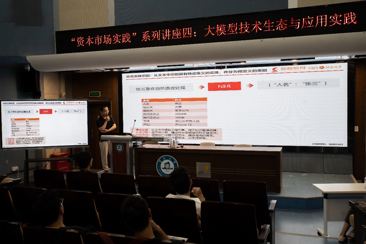 2024年10月10日下午,题为“大模型技术生态与应用实践”的学术讲座在新葡京博彩官网 综合楼3楼报告厅举行。本次讲座由招商证券金融科技中心AI开发团队架构师、中山大学博士陈成龙主讲,为校内110余名研究生提供了解行业最新动态的宝贵机会。