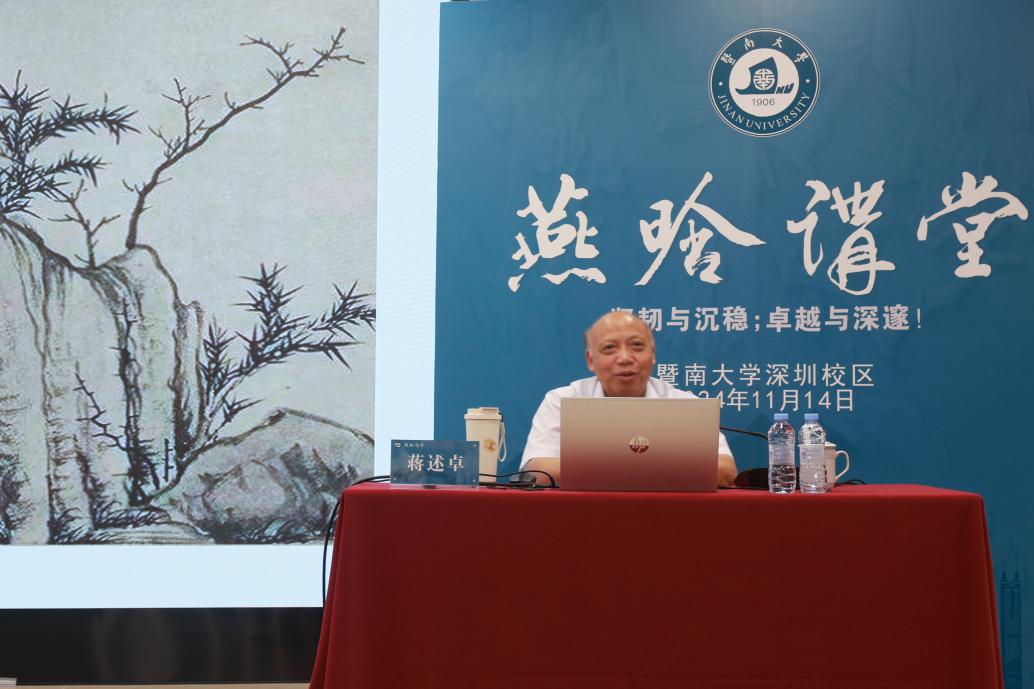 林晓灵在致辞中代表校区向蒋述卓教授对燕晗讲堂的关心与大力支持表示由衷的感谢。他说,创办燕晗讲堂是校区深入贯彻落实习近平总书记视察暨南大学重要讲话精神、全国教育大会精神的具体举措,也是认真落实中央统战部巡视整改要求和学校党委工作部署、进一步繁荣校区学术文化、全面提升人才培养质量的生动实践。燕晗讲堂以校区所在的燕晗山为名,寓意着我们将秉承山的坚韧与沉稳,致力于追求学术的卓越与深邃。讲堂将致力于邀请国内外知名学者、行业专家来校讲学,分享最新的学术成果和行业趋势。同时也鼓励师生们积极参与,通过互动交流、思想碰撞,激发新的学术灵感和创新思维。