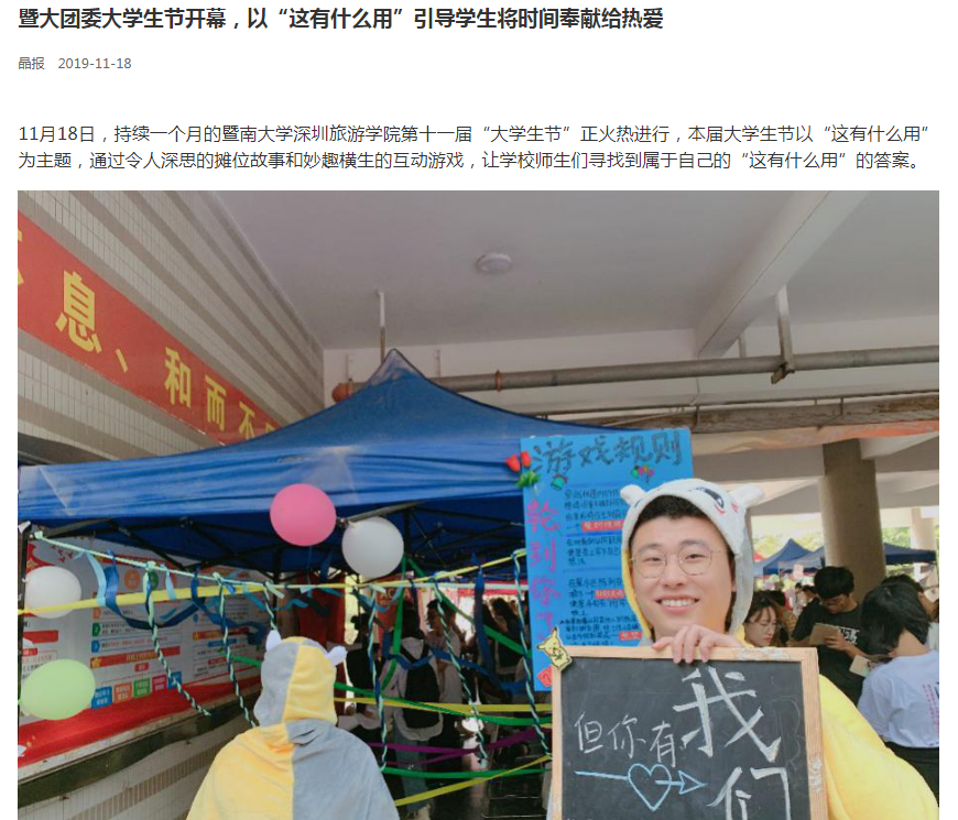 暨大团委大学生节开幕,以“这有什么用”引导学生将时间奉献给热爱(晶报)